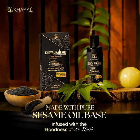 Khayal Hair Oil with Pure Sesame Oil Base | For Hair Strength & Scalp Health | 100% Organic | Crafted by Taila Paka Vidhi